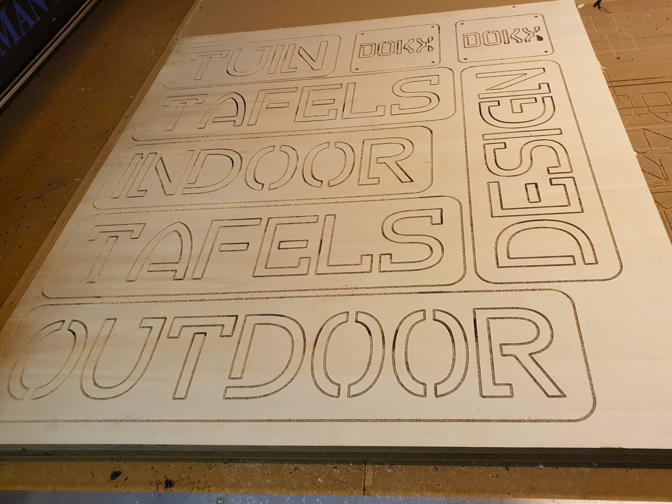 Wij frezen hout en plaatmateriaal met hoge precisie op moderne CNC-machines. Of het nu gaat om een serie onderdelen, losse letters of decoratieve panelen: we zorgen voor een strakke afwerking en constante kwaliteit.